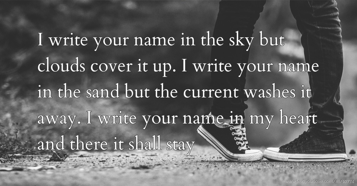 'write your name across the sky' [verse 1:] uh, for my name these niggaz'll die it's only one name write mines across the sky i gave cheeba to escape all the true lies i blow the smoke and lye see the cloud spell my name in the sky From my body and soul write your name across my heart Feel as high as the moon when you’re here with me.